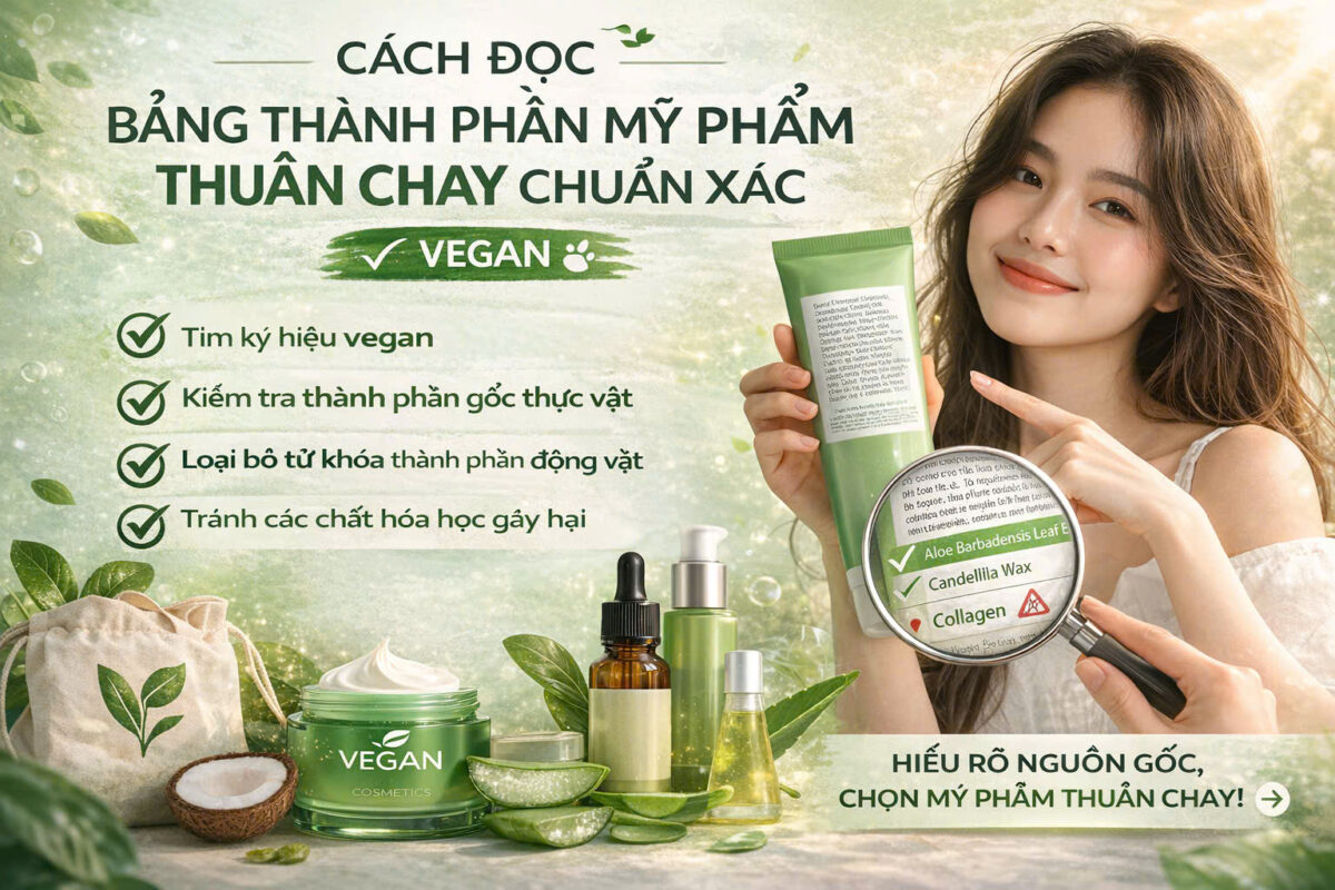 Hiểu bảng INCI giúp bạn chọn đúng sản phẩm. Bước 1: Kiểm tra 5 thành phần đầu tiên Đây là các thành phần chiếm tỷ lệ cao nhất. Bước 2: Tránh các dẫn xuất động vật phổ biến như: Collagen động vật Lanolin Sáp ong Carmine Bước 3: Tìm ký hiệu chứng nhận Vegan hoặc […]